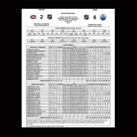 Goals scored by EDM - Matthew Benning, Leon Draisaitl, Kris Russell, Drake Caggiula, Darnell Nurse, Ryan Nugent-Hopkins. | MON - Maxi Domi, Andrew Shaw
